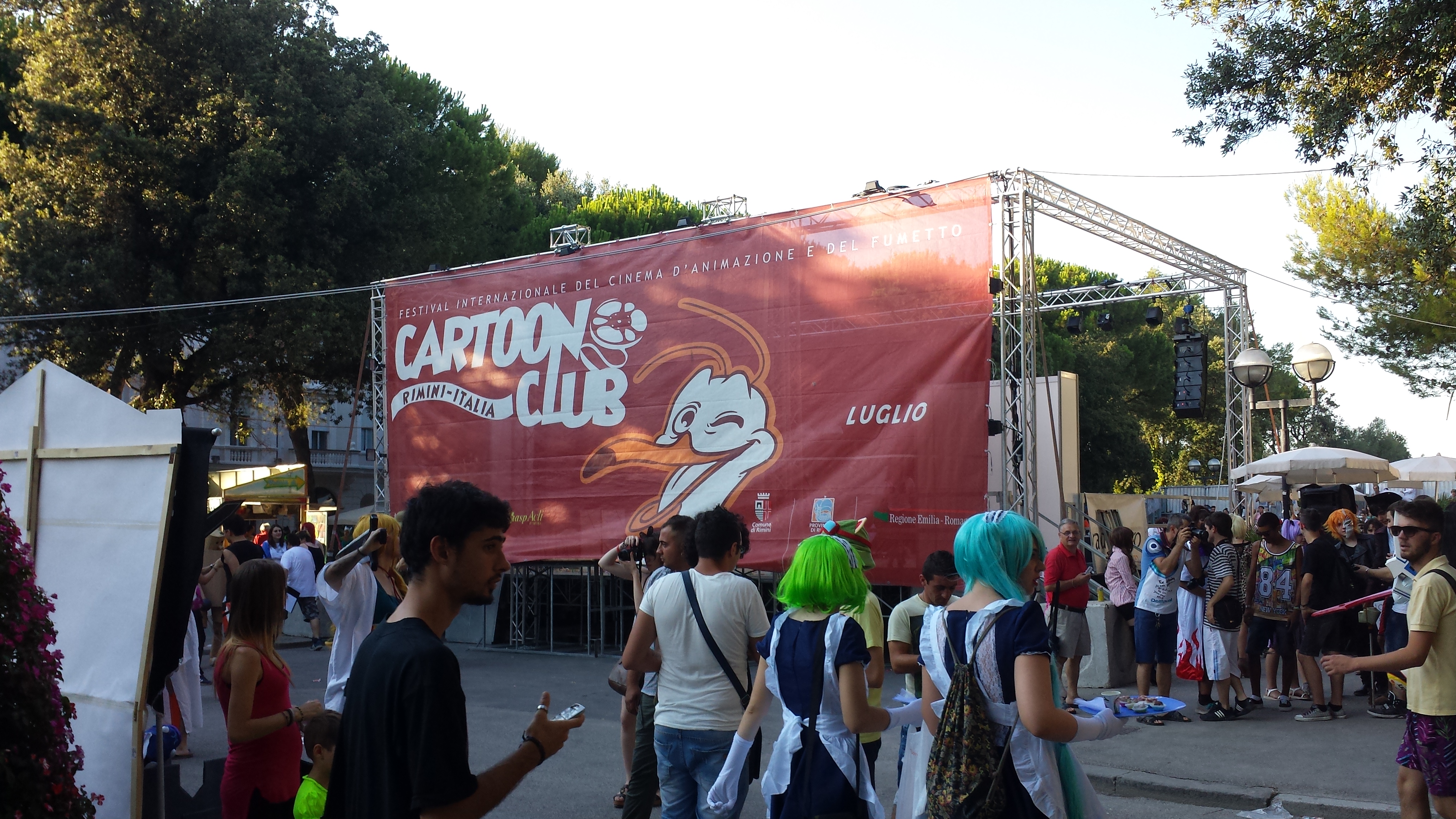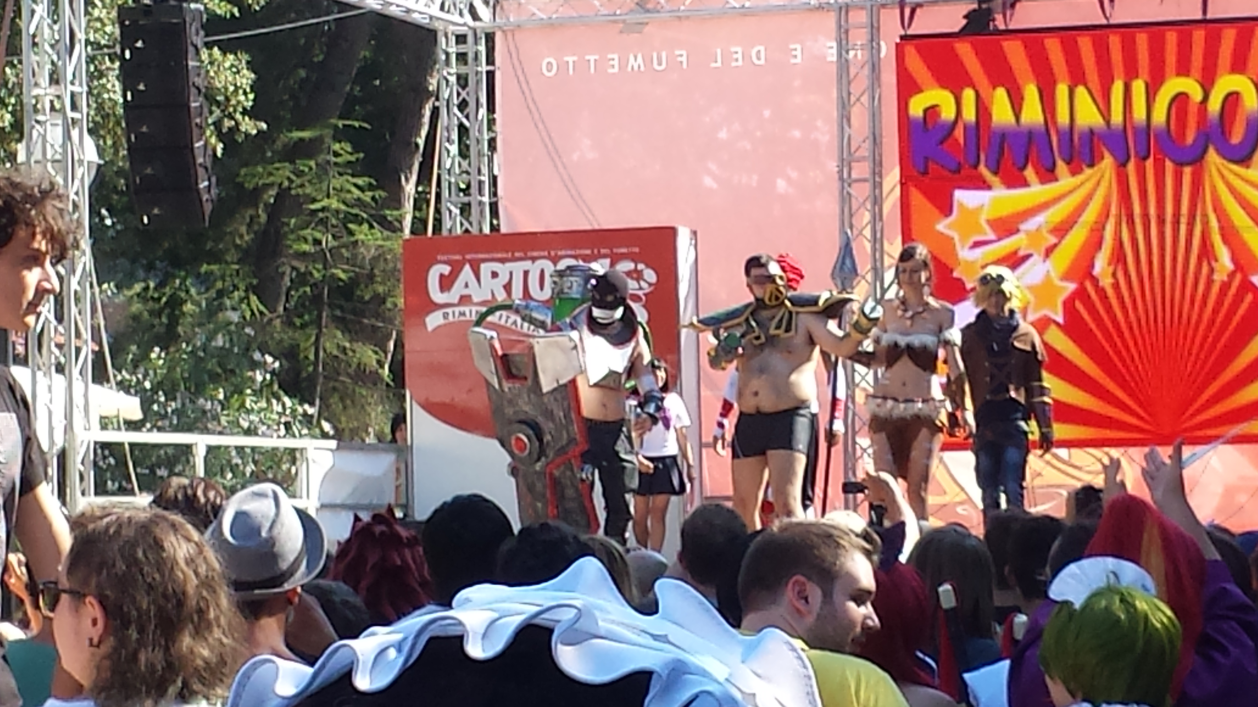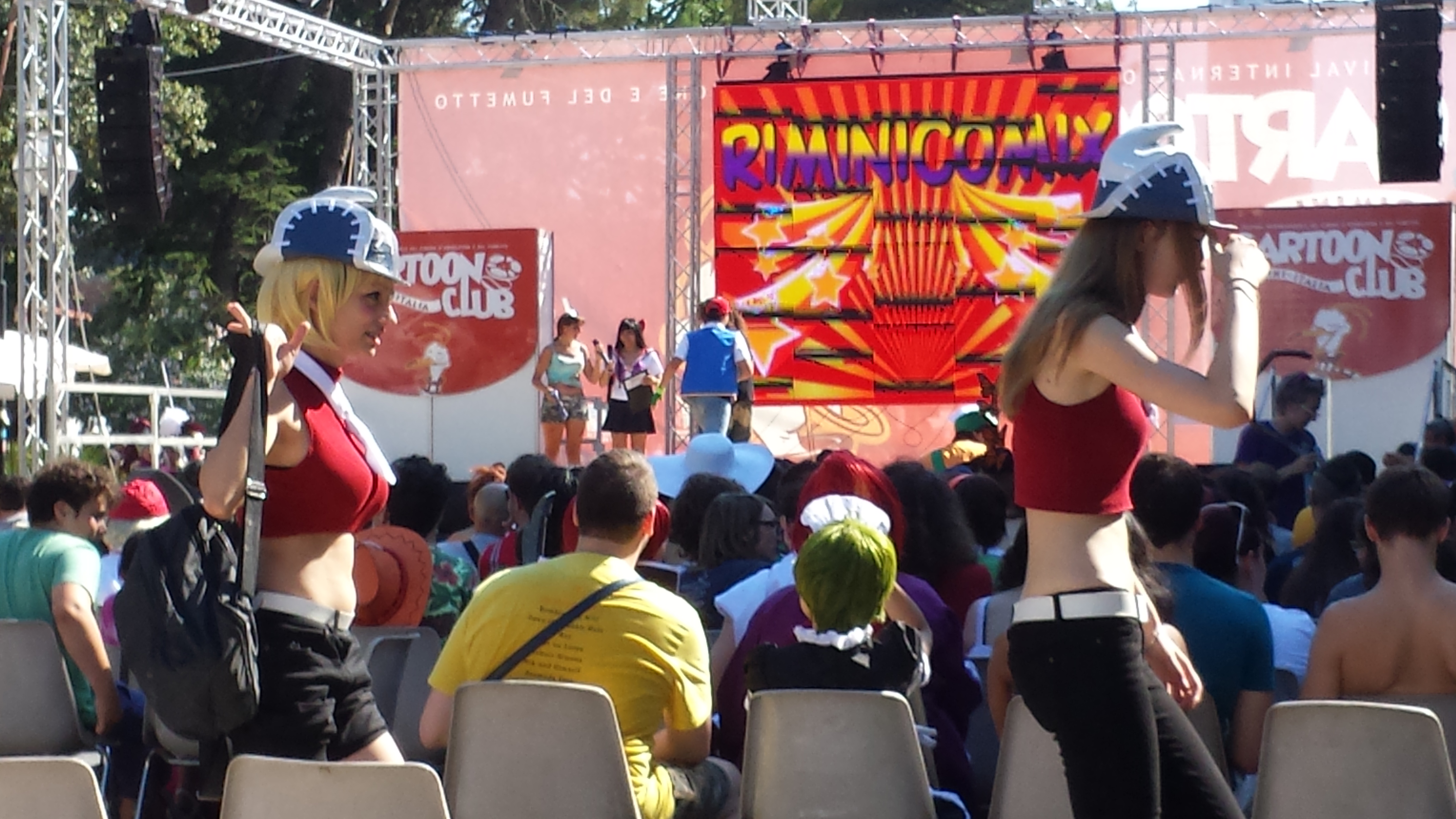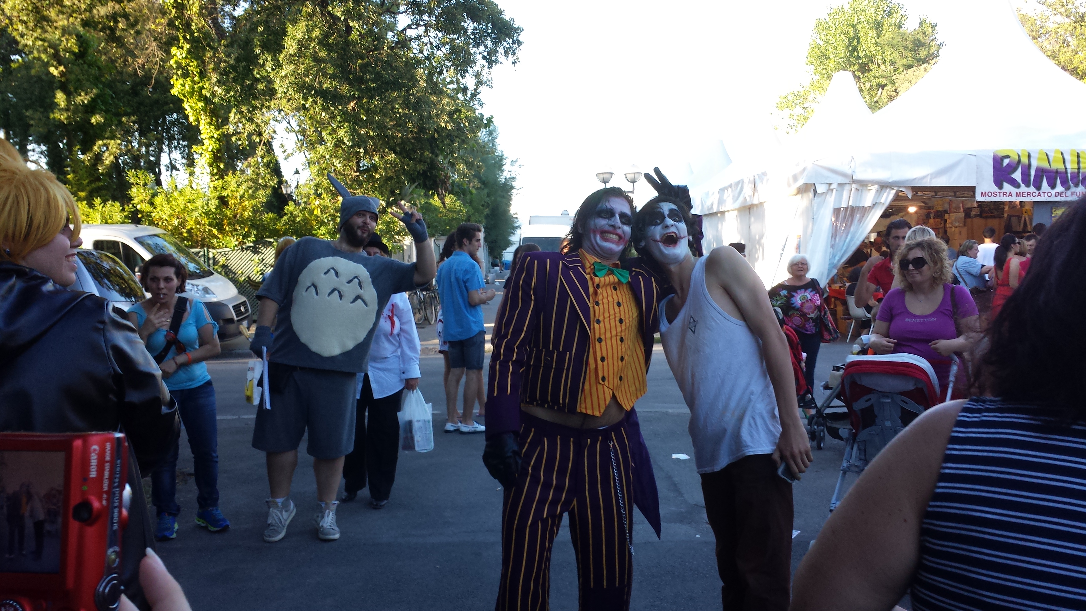 Comunque prima di tutto voglio parlare dell’unica nota negativa: sul sito del Rimini Comix c’era scritto che all’interno del tendone con gli espositori, ecc, c’era l’aria condizionata; beh, teoricamente c’era davvero ma si moriva di caldo comunque, per non parlare dei passaggi troppo stretti, e quindi in certi casi si restava bloccati in ingorghi infiniti dove quasi mi sono sentita male per il caldo.