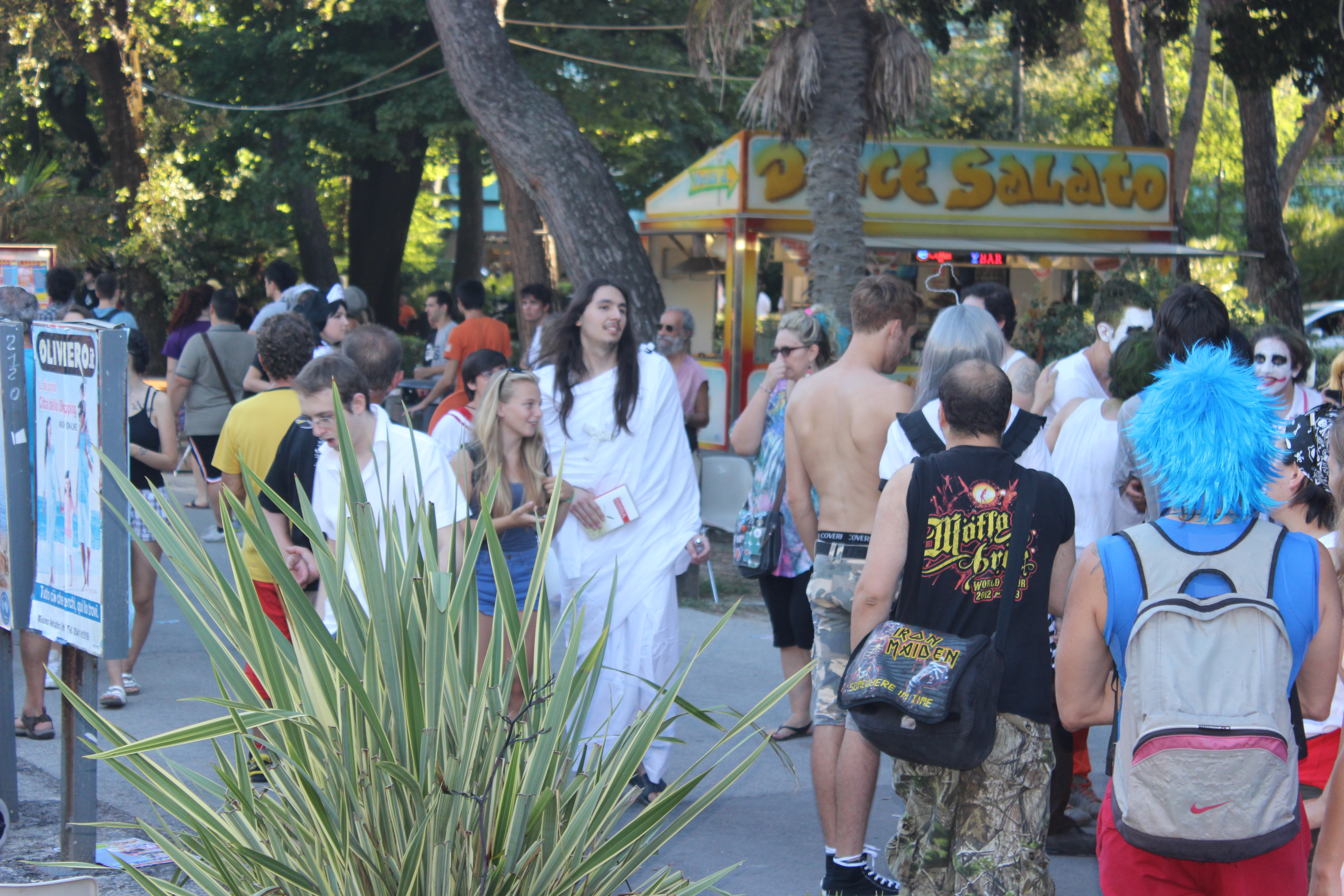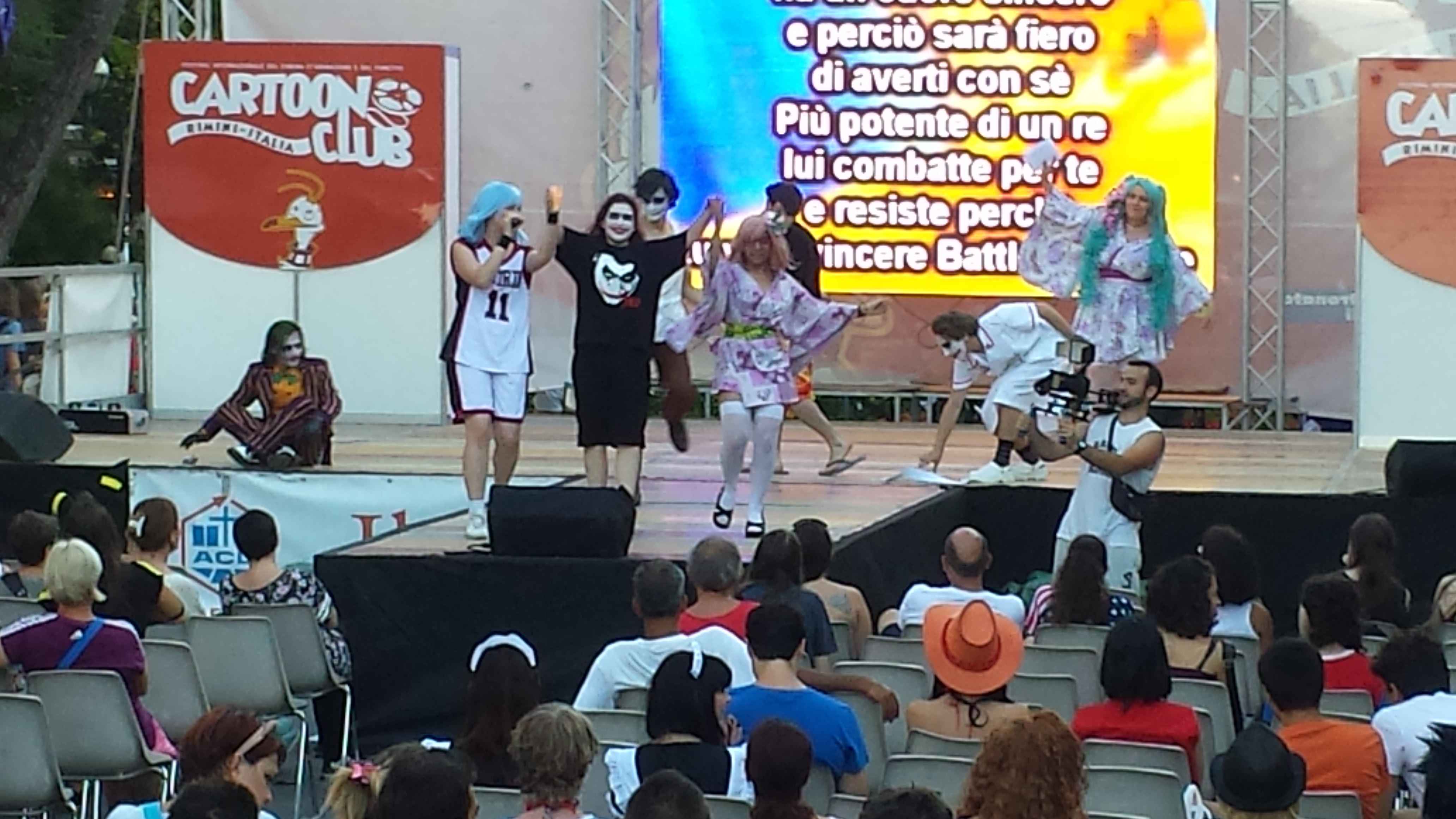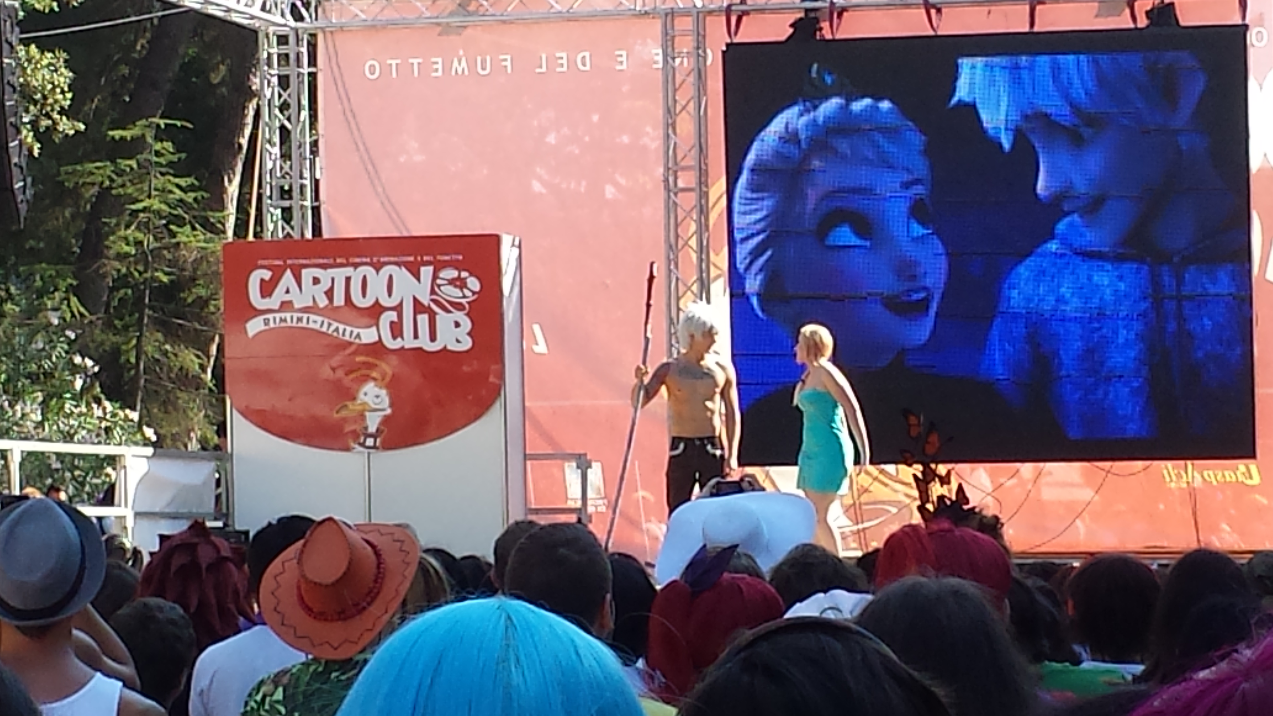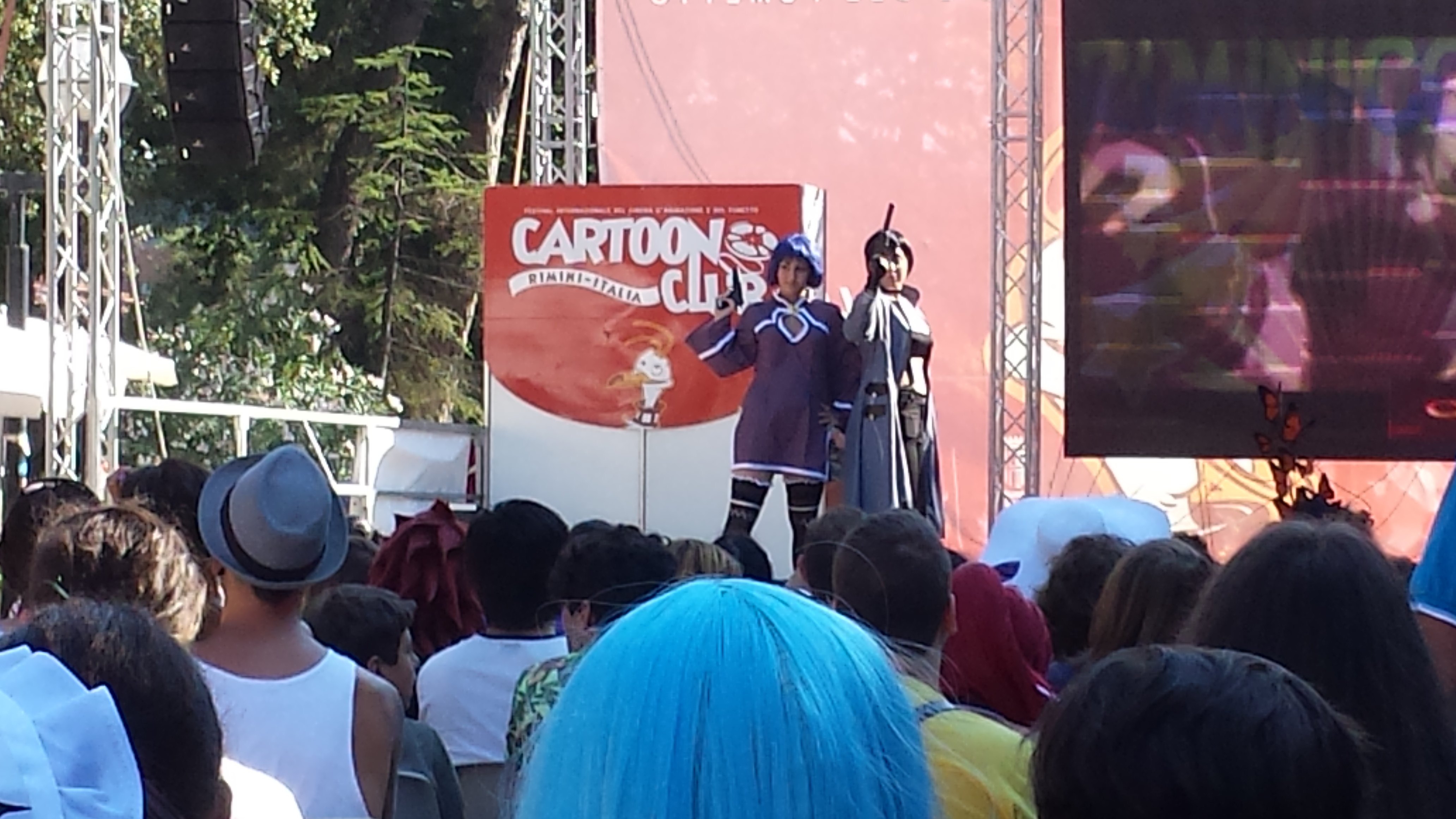 Comunque prima di tutto voglio parlare dell’unica nota negativa: sul sito del Rimini Comix c’era scritto che all’interno del tendone con gli espositori, ecc, c’era l’aria condizionata; beh, teoricamente c’era davvero ma si moriva di caldo comunque, per non parlare dei passaggi troppo stretti, e quindi in certi casi si restava bloccati in ingorghi infiniti dove quasi mi sono sentita male per il caldo.