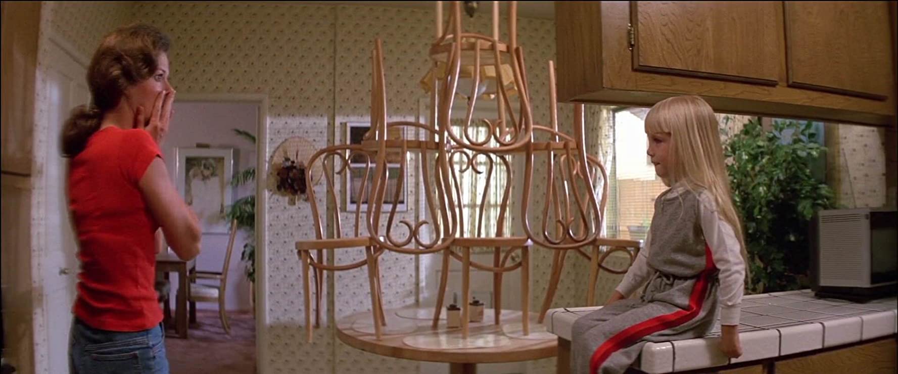 Il giorno dopo iniziano ad accadere degli eventi veramente bizzarri e particolari come il fatto che certi oggetti si spostano in alcuni punti in momenti ben precisi. All’inizio non è niente di che, anzi alcuni membri della famiglia sono pure affascinati e divertiti dalla cosa, ma il divertimento non durerà a lungo, perché a un certo punto queste misteriose entità inizieranno ad attaccare la famiglia e il tutto culminerà con la sparizione di Carol Anne, di cui però riescono a sentire ancora la voce attraverso la televisione quando è senza segnale. Disperati, i genitori contatteranno delle persone esperte in questo campo con la speranza che riescano a recuperare Carol Anne ed è qui che scoprono che hanno a che fare con dei Poltergeist, ovvero degli spiriti che si manifestano attraverso lo spostamento di oggetti, ma in questo caso sembrano essere molto più forti e concentrati nella casa dei Freeling.