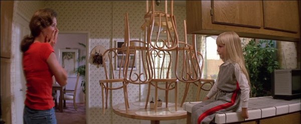 In questo caso parlerò della regia e degli effetti sepciali in un secondo momento e inizierò con il descrivere il ritmo e i personaggi. Dopo il prologo affascinante con Carol Anne, che culmina con lei che appoggia le mani davanti alla televisore (scena originale e bellissima che è entrata nella memoria di tutti), si parte con la presentazione del quartiere e della famiglia. E’ interessante la panoramica del luogo che viene fatta, un luogo relativamente nuovo che dimostra una certa ricchezza, un posto pulito dove vivono persone facolotose ma che, facendo un po’ di attenzione, si può notare come le case siano tutte uguali, senza una propria identità e tutte fatte quasi in serie. Questo particolare verrà sottolineato in un certo punto della pellicola.