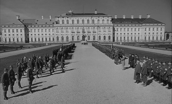 Fin da subito veniamo colpiti da un elemento molto interessante ovvero l’ambientazione. La pellicola inizia con il dialogo tra i due generali che avviene in una stanza enorme e piena di sfarzo. Un luogo pieno di comodità e lusso e, dopo questo discorso, passiamo quasi subito alla trincea. Qui il generale Minerau controlla come stanno tutti i soldati, senza rendersi conto delle loro condizioni e di dove sono costretti a rimanere ogni giorno. Quest’ultimi sono stanchi, stressati e spaventati perché costretti a vivere in una situazione di vita e di morte. Il generale non vive quest’esperienza e non capisce i suoi soldati che, prima di essere tali, sono innanzitutto uomini e questo suo comportamento viene sottolineato in particolar modo quando maltratta un soldato che mostava segni di shell shock (un distrubo da stress post-traumatico che molti soldati ebbero durante questa guerra). In questi momenti Kubrick è veramente bravo a mostra tutte le differenze e anche le pessime condizioni nelle trincee. Inoltre è molto bello il dialogo e la discussione che hanno Dax e Mireau riguardo a questo attacco, ai soldati e un discorso sul patriottismo che non mi aspettavo di sentire in un film di quegli anni (visto la forte censura che c’era).