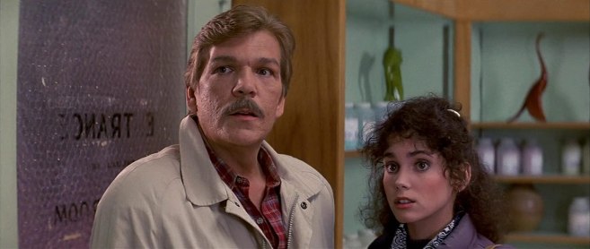 In ogni caso Wallace ha una regia curata a quadrata, diversa da quella di Carpenter ma comunque molto efficace, Quello che però colpisce più di tutti è il ritmo del film che non annoia mai. Nella prima parte il pubblico si incuriosisce subito per quello che sta accadendo. Ci sono vari elementi misteriosi e vogliamo sapere la verità. Così inizia la parte investigativa e quando Chillis ed Ellie arrivano nella piccola cittadina di Santa Maria le cose si fanno molto strane e non solo pr il fatto che i cittadini fissano in continuazione i protagonisti. In questa città sono installate un’enorme quantità di telecamere, c’è il coprifuoco alle 19:00 e inoltre girano quegli strani uomini con i vestiti eleganti. Il tutto dà l’aria di un luogo militarizzato o, come ha giustamente notato Shiki, sai di distopia pura, ma ne riparleremo più tardi. La seconda parte invece vira verso l’elemento sovrannaturale ed è lì che il film diventa un horror puro. Come se non bastasse per i protagonisti tutta questa vicenda si trasforma in una corsa contro il tempo per evitare un evento catastrofico. Ed è anche qui che Wallace gira una delle scene più belle e famose di questo film ovvero la rivelazione del pericolo dietro quelle maschere. Una scena puramente horror che sconvolge e disgusta lo spettatore, che difficilmente si potrà dimenticare.