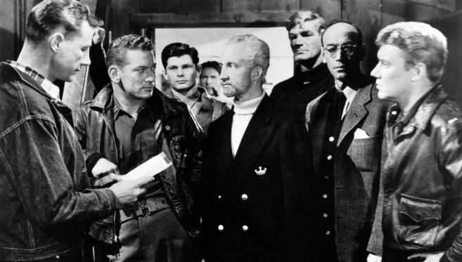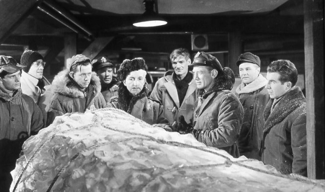 Partiamo però con il discutere dei due registi della pellicola e di un argomento molto interessante. Iniziamo dal più importante ovvero Howard Hawks. Hawks fu un regista importantissimo, uno dei più bravi e stimati del suo tempo che diresse sia pellicole mute che sonore e divenne molto famoso per le sue opere. Se dovesse citarle tutte, questa recensione non finirebbe mai, quindi sappiate che lui fu il regista di pellicole del calibro di Scarface – Lo sfregiato, film che in molti conoscono per l’omonimo remake di Brian De Palma (considero entrambe le pellicole sullo stesso livello e con lo stesso peso artistico). Christian Nyby qui invece è al suo debutto alla regia e dopo questo film diventerà un prolifico regista per la televisione. In questo film Hawks venne accreditato come produttore ma non come regista, nonostante in molti oggi dicano diversamente. Come mai? Diciamo che in questo caso sorse lo stesso problema di Poltergeist. Chi diresse il film? Tecnicamente fu Nyby ma su questo punto ci furono diversi contrasti. In primis perché nella pellicola appaiono molte tematiche ricorrenti di Hawks e un suo stile molto personale. Inoltre l’attore Kenneth Tobey dichiarò ai tempi che fece tutto Hawks. Invece James Arness, che interpretava La Cosa, disse che fu Nyby a dirigere il tutto nonostante Hawks fosse molto presente sul set. Lo stesso Hawks disse che quello che fece fu solo dare delle direttive, anche se nel tempo iniziò a dire di aver avuto molto peso su tutta la storia e la regia. Nonostante tutti questi battibecchi, il film è uscito in maniera molto interessante e vorrei iniziare con il descrivere un’enorme differenza rispetto alle opere che conosciamo noi.