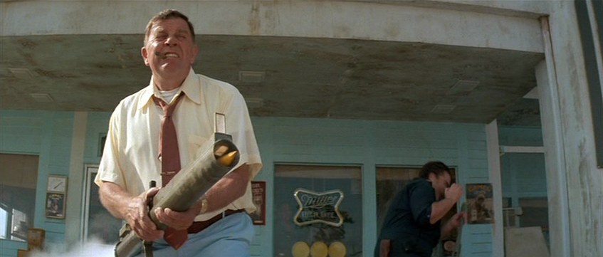 A livello registico la pellicola ha dei momenti alti ma soprattutto dei momenti davvero bassi e involontariamente comici. Ci sono delle inquadrature e delle scene che sono state dirette anche bene come ad esempio all’inizio quando il ponte si alza e i veicoli iniziano a schiantarsi gli uni contro gli altri. Quella scena era diretta molto bene e ci sono altre inquadrature e momenti altrettanto interessanti nel corso della pellicola. Però ci sono anche tanti momenti registici abbastanza scadenti. Uno dei difetti principali a mio avviso riguarda il ritmo veramente altalenante. Ci sono scene molto veloci (forse troppo) e altre tremendamente lente dove il ritmo cala parecchio. In alcuni casi ci sono stati perfino degli scavalcamenti di campo e in uno o due punti le scene dovevano essere tagliate un po’ prima per evitare che si notassero certi dettagli. Insomma la regia è molto altalenante anche se tende ad andare molto più verso il caotico disastroso e, come se non bastasse, si dice che certe scene, quelle migliori, siano state realizzate dal grande George Romero. Perché? Perché, tralasciando il fatto che il nostro scrittore probabilmente non aveva idea di come dirigere un film, come ha ammesso lo stesso King durante le riprese lui era strafatto di cocaina. Quindi unite una persona che non ha mai studiato regia e che è fuori come un melone per la droga e vedrete il casino che ne verrà fuori.