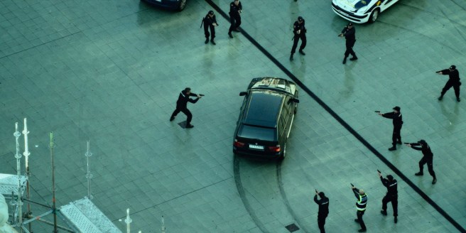 Nella prima parte sono molto belle le inquadrature che il regista fa all’interno della macchina. Riesce a cambiare inquadratura in maniera molto fluida e precisa, si passerà ai volti dei vari personaggi per poi arrivare a dei dettagli come il cellulare, delle foto, il sangue sui vestiti o sulla pelle e così via. In questo caso, oltre all’ottima regia, è il montaggio (curato da Jorge Coira) che funziona alla perfezione ed è il montaggio che riesce a creare le giuste atmosfere e tensione, un montaggio che riesce ad aumentare il proprio ritmo fino ad arrivare al proprio climax e che in seguito sa quando fermarsi, far respirare i personaggi e il pubblico, ma riuscendo sempre a far rimanere tutti sulle spine. In ciò aiutano molto anche le voci dei vari attori che si sovrappongono l’una all’altra. In certe situazioni di panico potremo avvertire la confusione e la paura dei protagonisti e la rabbia e l’ansia dell’uomo dall’altro capo del telefono. Il fatto che queste voci si sovrappongono rende la situazione più realistica. Nella prima parte comunque il protagonista sarà costretto a spostarsi da un luogo all’altro per volere dell’attentatore e per non farsi vedere da certe persone. Anche in questo caso le inquadrature e il montaggio funzionerà benissimo.