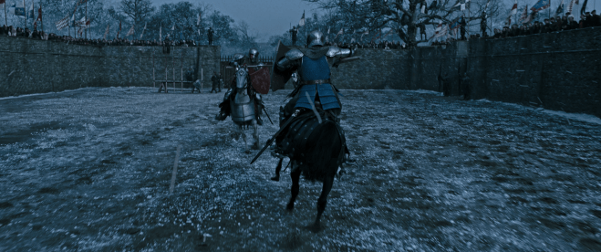 Nonostante sia un film che parla molto dei personaggi, delle loro relazioni e di molte tematiche interessanti che vedremo più avanti, ci sono delle sequenze d’azione fatte con grande cura. Tralasciando il combattimento che ci sarà tra Jean e Le Gris, vedremo anche battaglie legate agli scontri contro gli inglesi e saranno principalmente poste durante la parte dedicata a Jean, visto che lui si troverà spesso sul campo di battaglia. Scott nelle sue pellicole è sempre stato bravo nel creare combattimenti stupendi e in questo caso non fa eccezione. Ciò che salta subito all’occhio sono le scene cruente, dove verrà versato diverso sangue, e i colpi inflitti ai nemici (o al protagonista) si sentiranno in tutta la loro brutalità e forza.