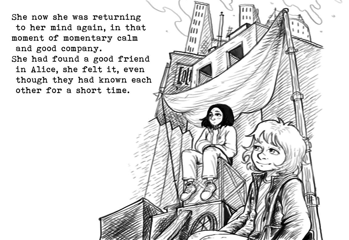 Alice se ne stava seduta accanto a Gaia, a godersi la luce del sole e teneva gli occhi chiusi, in profonda riflessione. Le gambe di entrambe a penzoloni sul vuoto; erano su una parte non crollata del tetto dell’enorme e complessa fabbrica abbandonata.