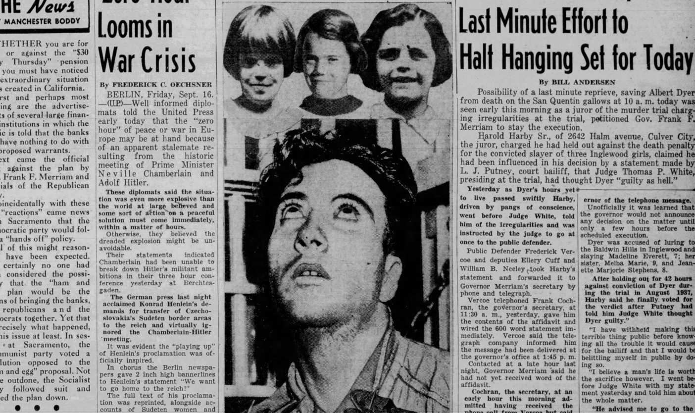 The first significant event that gave de River a significant advance in his career was, of course, the case of the three Inglewood girls slaying. Little Melba Everett, with her younger sister Madeline and their friend Janette Stephens disappeared from Centinela Park on June 26, 1937. They soon will be found brutally ravished in Baldwin Hills ravine. Dr. de River made first in the history of the USA a psychological portrait of a criminal, he stated that girls must have known their abductor and trusted him. Soon police arrested mentally handicapped Albert Dyer, who confessed to the slayings and immediately became the face of evil for the press. In our times there is already lots of material that makes it clear that Dyer was innocent and that the confession was forced. If you want to know more I recommend you read the book “Colder Case: How California Executed the Wrong Man” and also the book “Little shoes” written by the relative of the three slain children Pamella Everett.