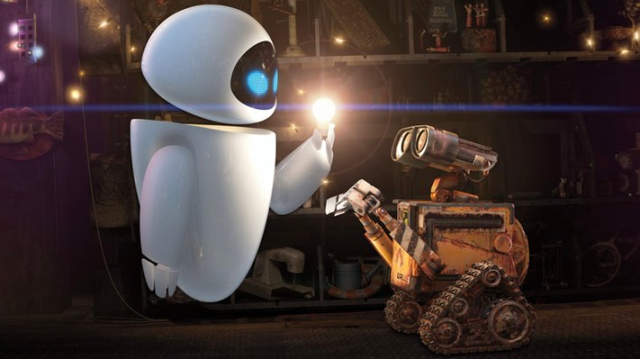 In primis non si può fare a meno di parlare del design. Prediamo per esempio proprio WALL-E, un design ben studiato ma basato anche sulla semplicità visto che di base assomiglia proprio a una scatola, senza la presenza di elementi come bocca, naso o orecchie che possano farlo sembrare un essere umano.  L’unica cosa con cui riesce a rapportarsi con il pubblico sono i suoi “occhi” che assomigliano a dei binocoli. Ed è su questo punto che hanno fatto un lavoro eccellente perché, nonostante quegli occhi siano robotici anzi siano proprio delle lenti, riesce a trasmettere delle grande emozioni, ci trasmette un grande senso di dolcezza ma anche di malinconia e in parte è dovuto al modo in cui quei “binocoli” sono posti, facendo somigliare gli occhi a delle gocce d’acqua. Quello non sarà l’unico elemento che permette a WALL-E di comunicare le sue emozioni, a anche su questo ci torneremo più tardi. EVE ha un ottimo design e mi piace il contrasto che c’è nell’aspetto rispetto a quello di WALL-E e non solo peri il fatto che quest’ultimo sia in funzione da tanto tempo e mostri segni di logoramento, ma proprio per il contrasto tra design vecchio e nuovo. EVE ha un aspetto più minimalista, con linee semplici e morbide che la rendono simile a una goccia (o a un uovo, come disse lo stesso Stanton) e il piccolo schermo che possiede sulla testa mostra due occhi che possono far comprendere il suo stato d’animo.