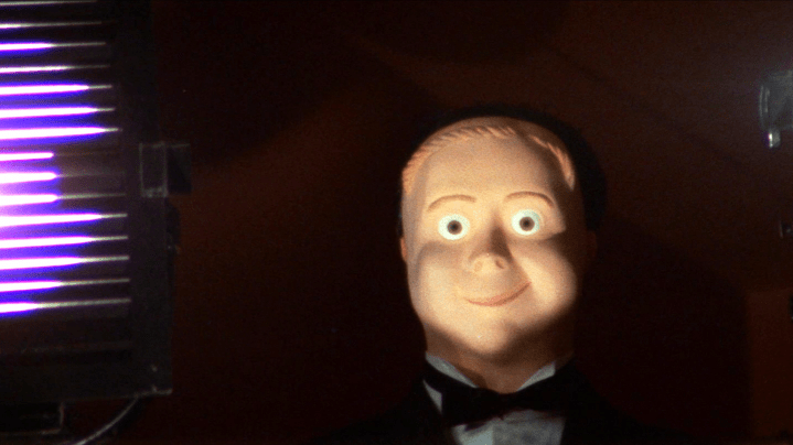 Parlando del lato tecnico, possiamo vedere fin da subito una regia veramente ottima che anche nei titoli di testa dà una messa in scena e una costruzione della tensione veramente stupenda, iniziando proprio con questa inquadratura dall’alto della batteria del protagonista e in seguito mostrandoci l’uomo misterioso osservare il tutto da lontano. Anche in questo caso avremo delle immagini e scene di forte impatto, come ad esempio questo cuore che batte su uno sfondo nero ogni volta che Roberto vede quell’uomo o delle belle inquadrature che riprendono quest’ultimo da lontano e perfino degli ottimi zoom. Perfino quando Roberto lo inseguirà dentro al teatro avremo tante belle sequenze, come la carrellata in avanti sulle tende rosse. Praticamente il film sa rendersi accattivante fin dall’inizio e questa cosa non scemerò con il passare del tempo, anzi non farà che aumentare sempre di più, soprattutto quando la persona in maschera inizierà a perseguitare il protagonista, riuscendo a entrare a casa sua e trovando inquietante la mancanza di un movente preciso per cui si accanisce su di lui. Il film inoltre presenterà a livello registico ed estetico dei momenti incredibili e lo possiamo vedere nelle scene degli omicidi, realizzate attraverso delle ottime soggettive e in certi casi con delle scelte di montaggio e inquadrature degne di nota (l’ultimo omicidio e la scena finale sono le migliori in assoluto).