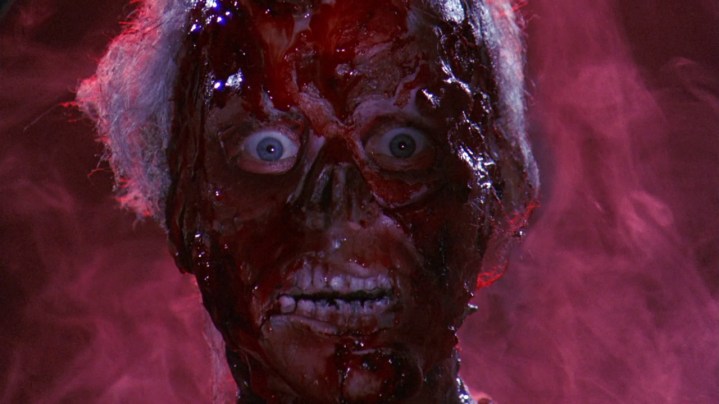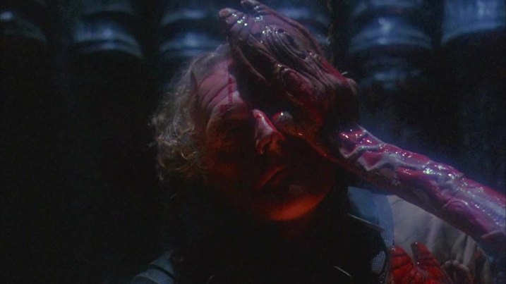 In questo film ci sono numerosi personaggi e, anche se non hanno una psicologia molto approfondito e tridimensionale, sono abbastanza caratterizzati da comprendere appieno la loro personalità ma soprattutto le loro paure. Quest’ultima sarà il tema centrale della pellicola in quanto nel mondo di Morganthus prendono vita. Certo, è una cosa che si è vista molto spesso e ancora oggi è usata tanto, ma almeno qui è usata abbastanza bene. Pian piano scopriamo la paura di tutto l’equipaggio che prenderanno vita e li uccideranno. Questo sarà anche tutta la parte centrale (e in generale tutto il film) in cui verranno massacrati uno a uno in modi molto fantasiosi e anche folli. Ad esempio una delle sequenze che preferisco è quella in cui un cristallo si conficca all’interno del braccio del malcapitato e dall’interno risale fino in cima. La figura del Planet Master è affascinante così come lo è la verità su Morganthus e la piramide stessa e tutti questi elementi creano una forte curiosità e in parte mi dispiace che non abbiano approfondito di più tutto ciò perché aveva un potenziale veramente enorme. E penso proprio che anche questo potenziale, oltre al lato tecnico, sia ad aver reso il film un cult.
