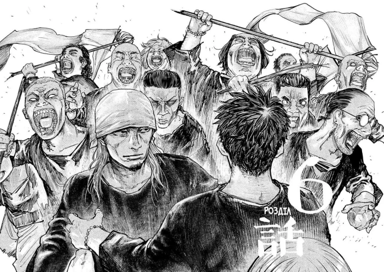 I disegni, come avevo già detto, sono stati tra le prime cose che mi hanno colpito in quest’opera per via dei loro tratti sporchi e marcati. Diciamo che è un tipo di stile che apprezzo particolarmente, uno stile volutamente impreciso e ricco di linee che creano situazioni e immagini incredibili ma che hanno anche un problema: se non utilizzate bene possono creare confusione. In questo caso il mangaka usa perfettamente questo stile di disegno in diversi elementi e in primis proprio nell’atmosfera. L’atmosfera del manga è opprimente e per l’appunto sporca, l’autore non si fa problemi a mostrarci certi orrori commessi in questo villaggio e lo fa attraverso scene e sequenze cariche di tensione in cui il volto di certi personaggi arriva a spaventare in quanto rappresenta appieno la follia, la rabbia di quel preciso momento, dà corpo alle emozioni di questo tipo. Il tutto viene fatto senza distorcere troppo il volto dei personaggi, ma enfatizzando certi elementi coma la bocca aperta come se avessero fame, gli occhi carichi di emozioni molto forti e così via.